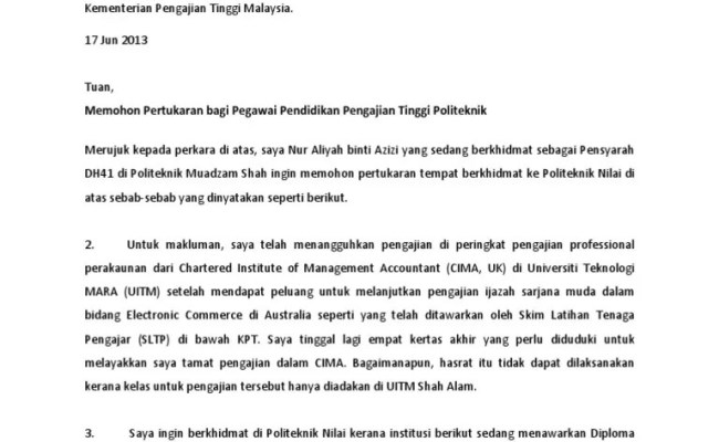 Contoh Surat Pertukaran Tempat Kerja Kerajaan Surat Rayuan Untuk Bekerja Semula Helowinj For More Information And Source See On This Link Lovingbillowyzy